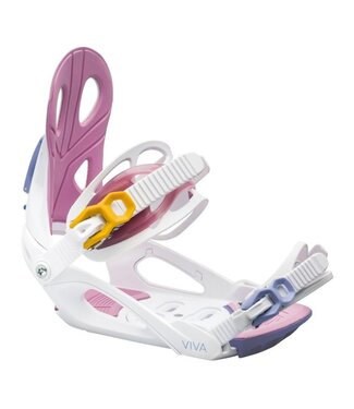 Comfort and adjustability combine for a balanced ride. The Roxy Viva is the perfect pairing for any of our Roxy all mountain boards. With comfort in mind, the Viva features a medium-soft flex, a new cored dual band ankle strap, full EVA padded highback with tool-less forward lean adjustability, and EVA Toe and Heel Pads to absorb shock and vibration. Lightweight components include cored highback with EVA padding and a unique baseplate with open side panels for a more forgiving flex and easy movement. Step into the Roxy Viva and cruise the mountain with confidence!